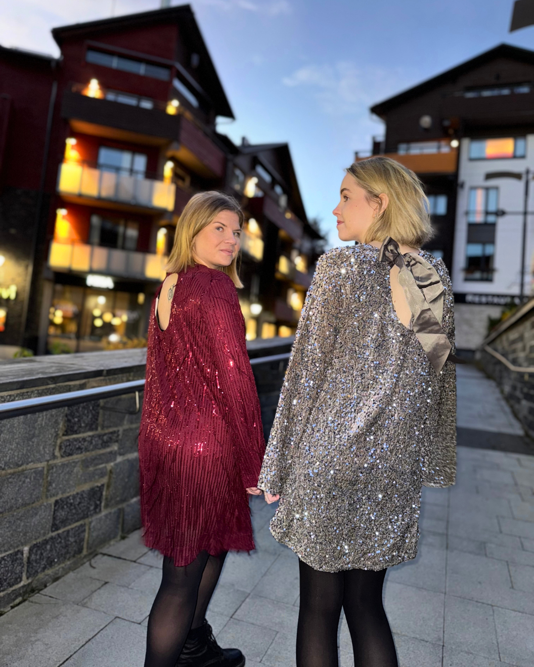 PCKAM LS DEEP BACK BOW DRESS JRS NOOS BC Paljettimekko