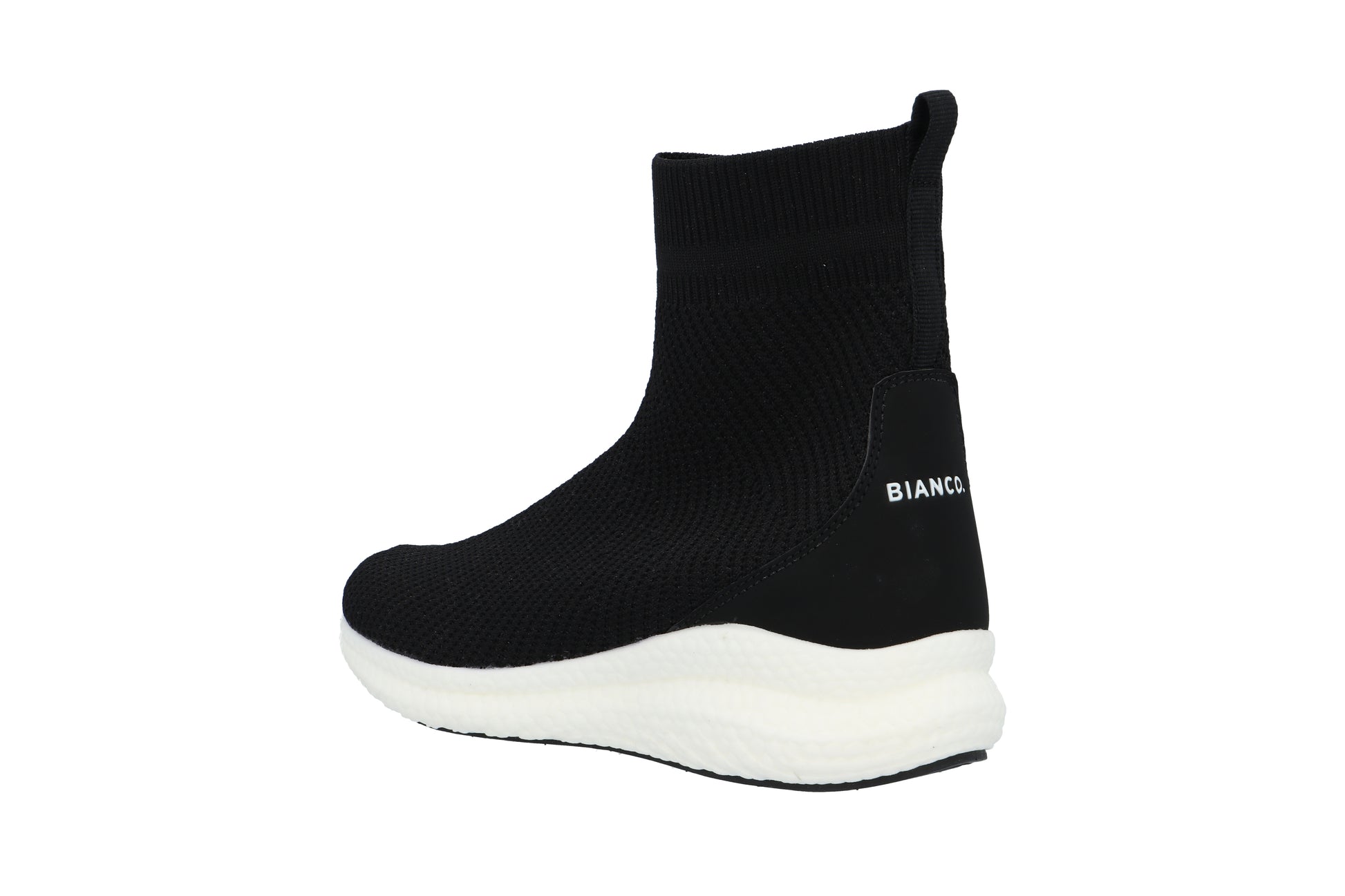 Naisten rennot varrelliset neulostennarit kevyellä EVA-pohjalla. Pohjallinen muovautuu jalan mukaan ja on uskomattoman kevyt ja mukava jalassa. Väreinä musta ja vaalean roosa. Takana vetolenkki helpottamassa kengän pukemista jalkaan. Kantapään kohdalla Biancon logo.