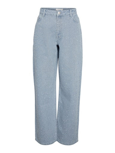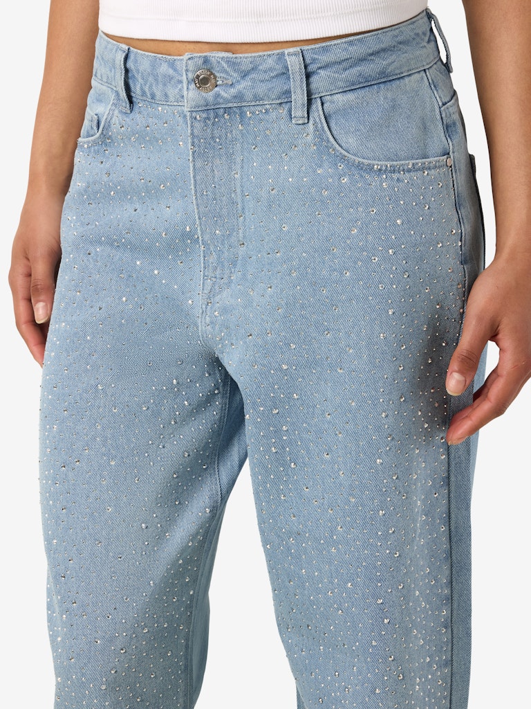 Noisy Mayn farkut, joissa etupuolella timantteja. Korkeavyötäröinen loose malli kolmella eri lahkeenpituudella.