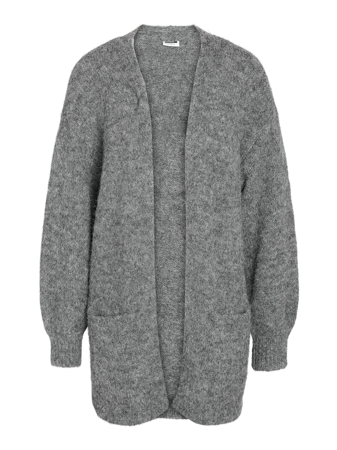Noisy Mayn hurmaava ja pehmeä rennon mallinen neuletakki, joka ulottuu puoleen reiteen. Neuletakissa on taskut, muttei nappeja.