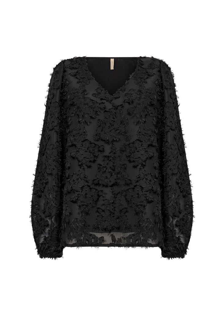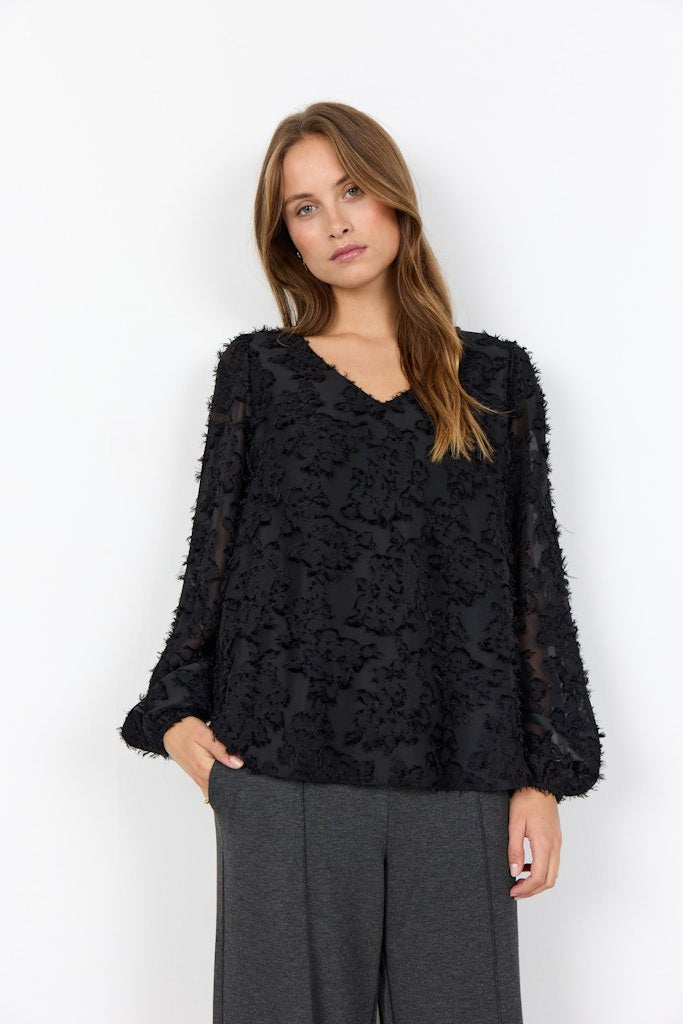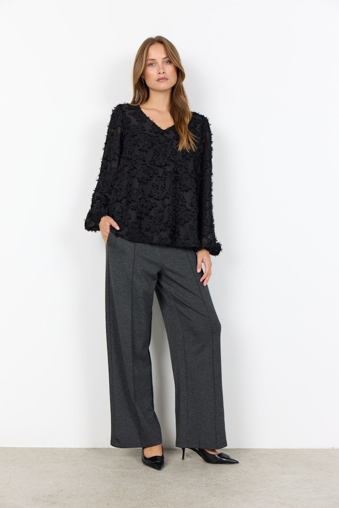 Soyaconceptin pusero hapsu yksityiskohdilla ja pussimaisilla hioilla. Helppo yhdistää niin arkeen kuin juhlaankin.