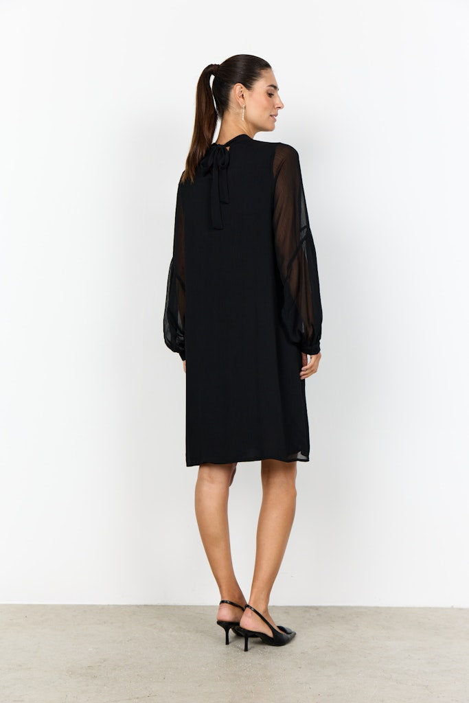 Soyaconceptin mekko läpikuultavilla hioilla toimii niin arkeen kuin juhlaankin. Niskassa nauhat jotka voi laittaa vaikka rusetille pieneksi yksityiskohdaksi.