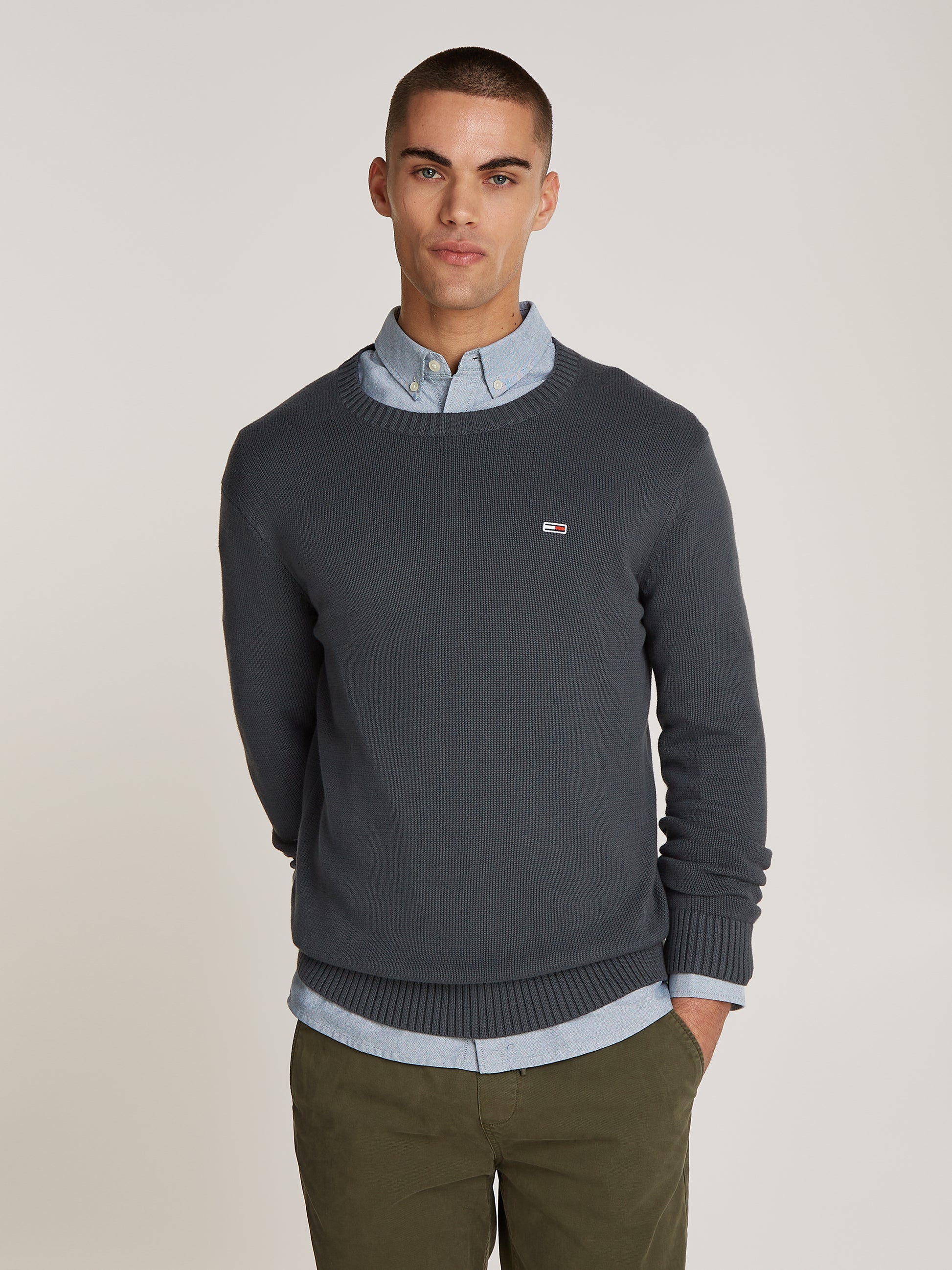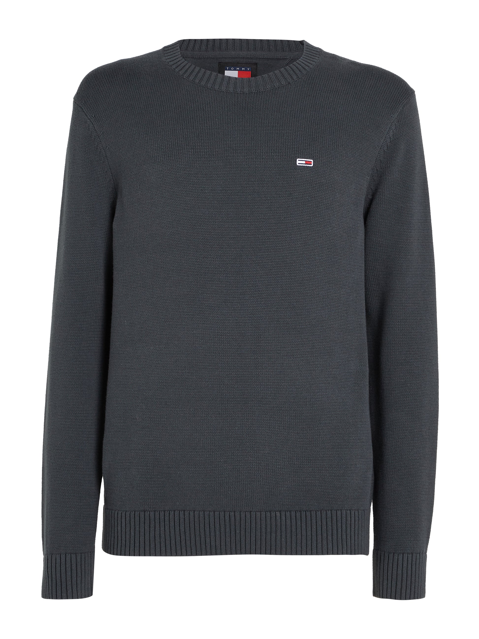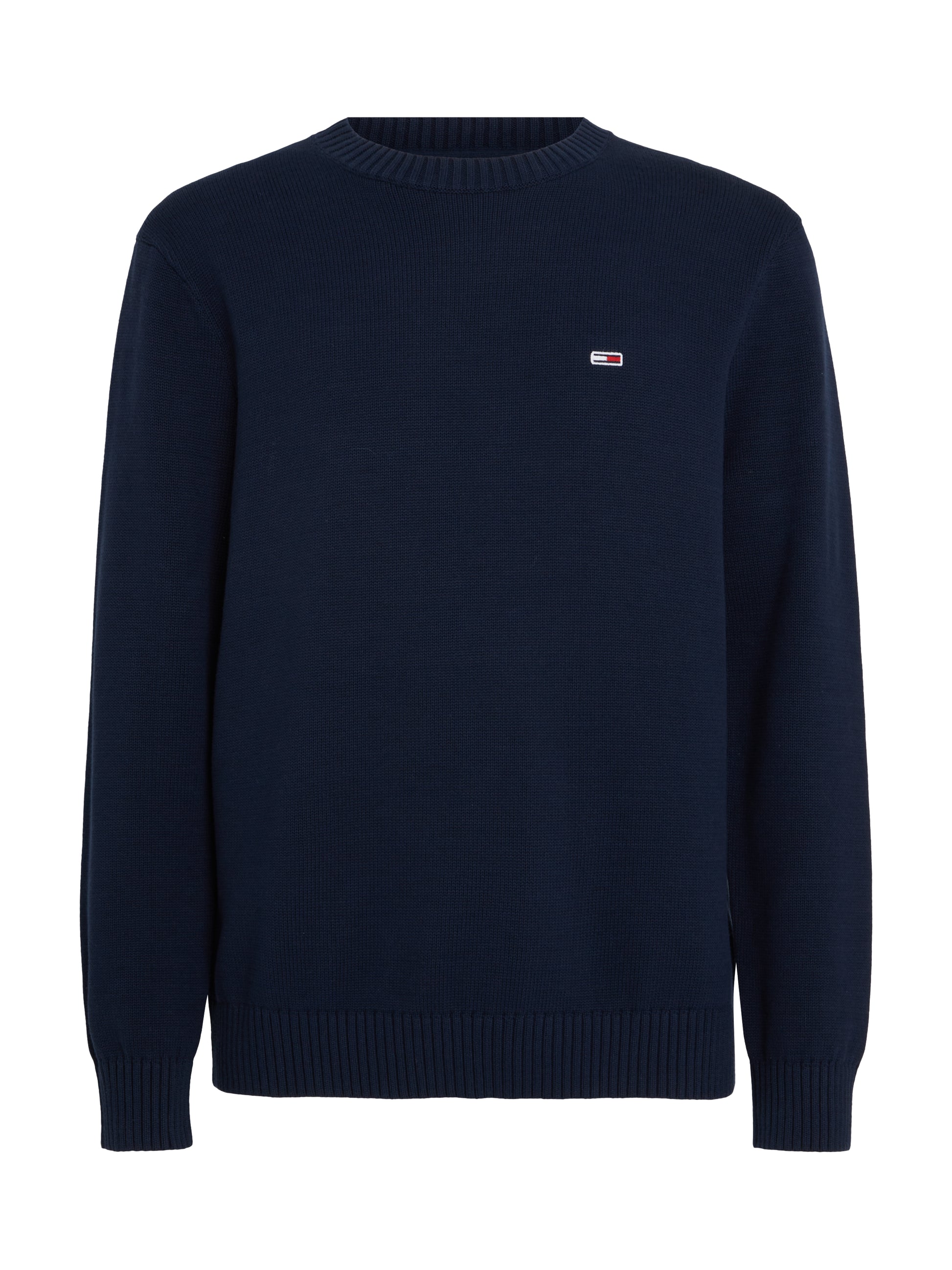 Tommy Jeansin hiukan ohuempi puuvillaneule pyöreällä pääntiellä. Rinnassa pieni logo.
