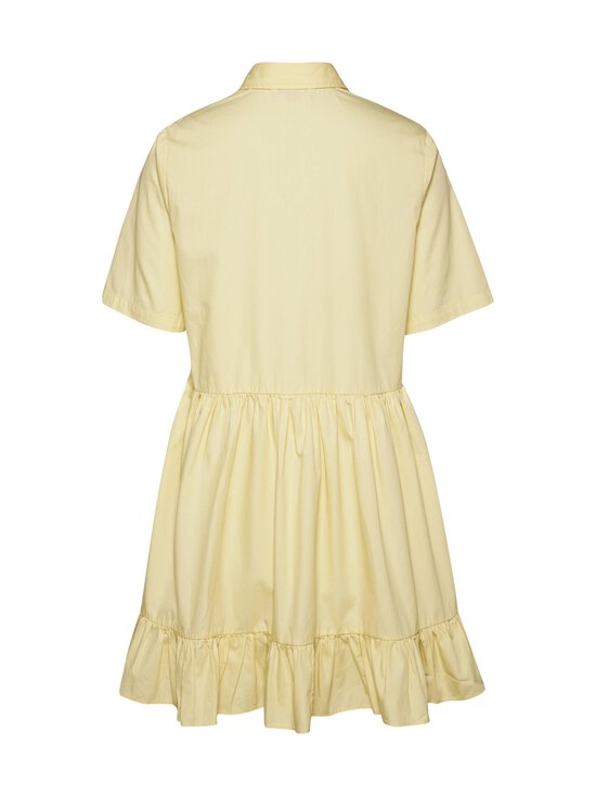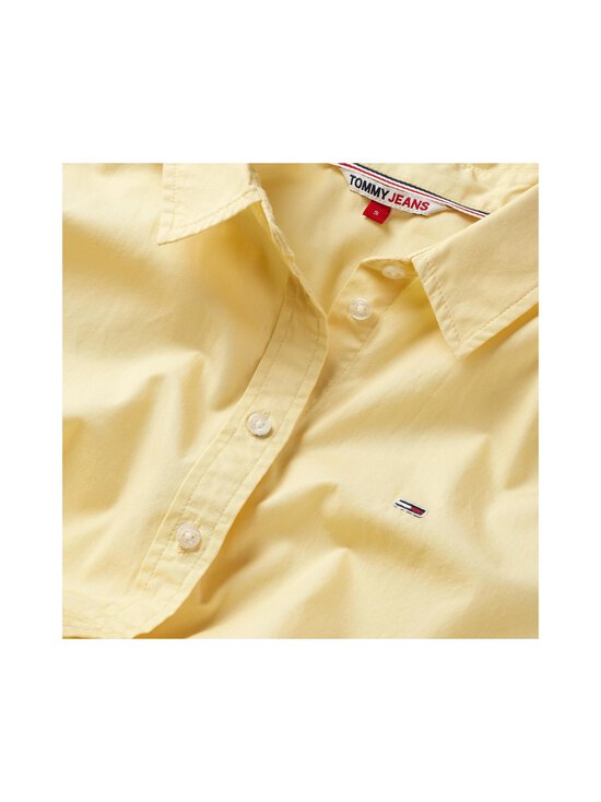 Tommy Jeansin puuvillainen paitamekko ihanassa vaalean keltaisessa värissä. Mekossa t-paita hiha ja napitus edessä alas saakka.