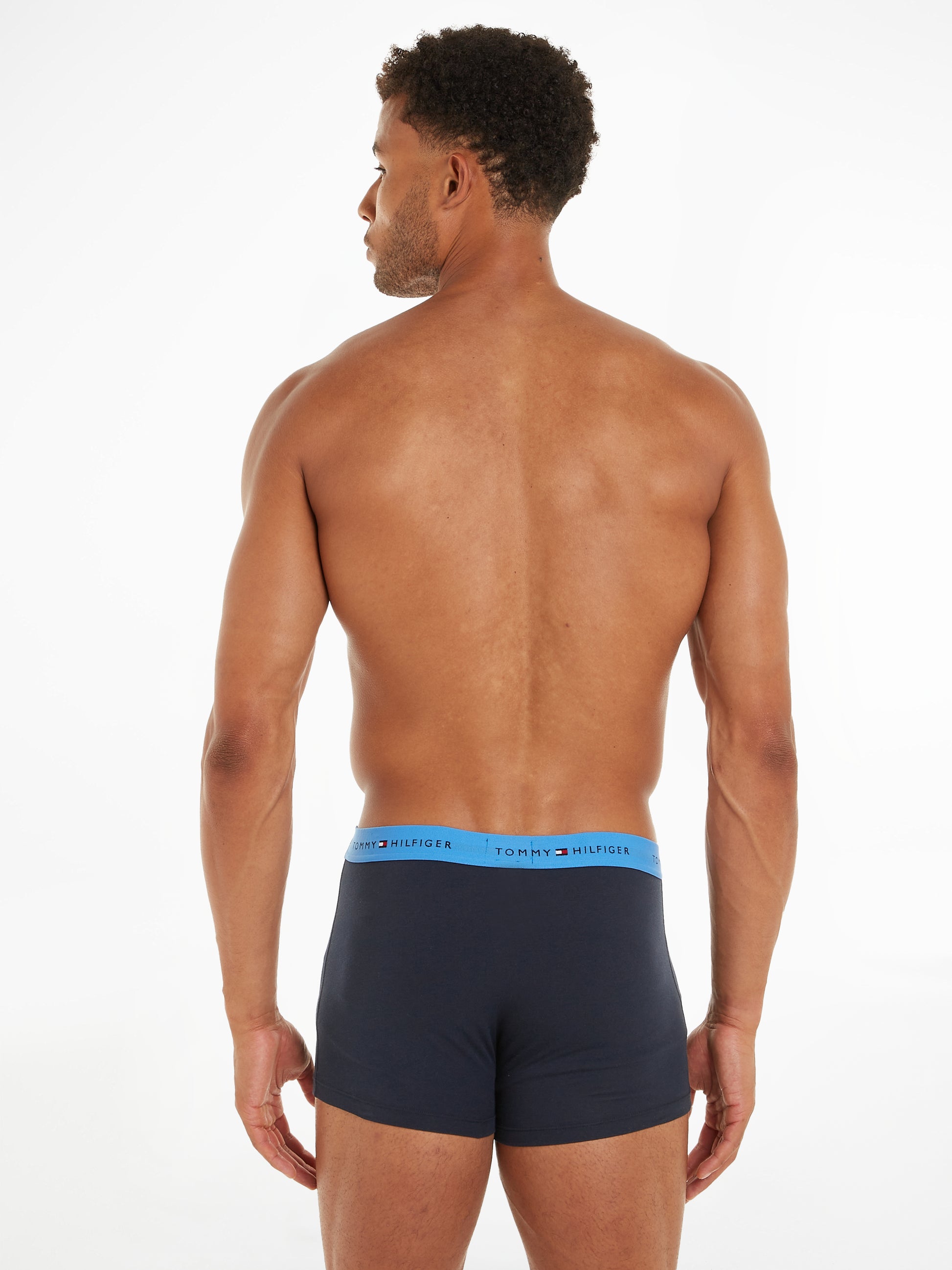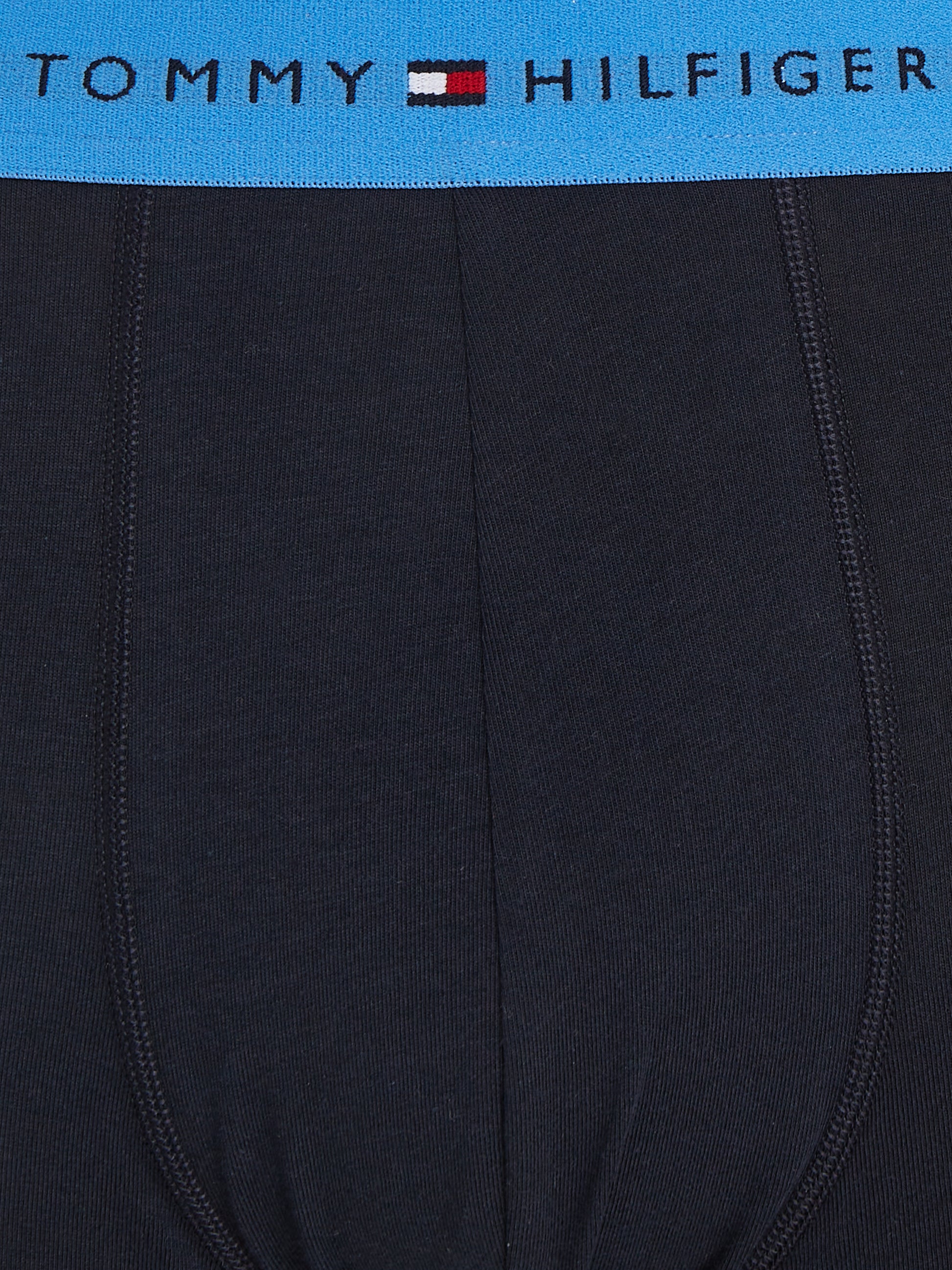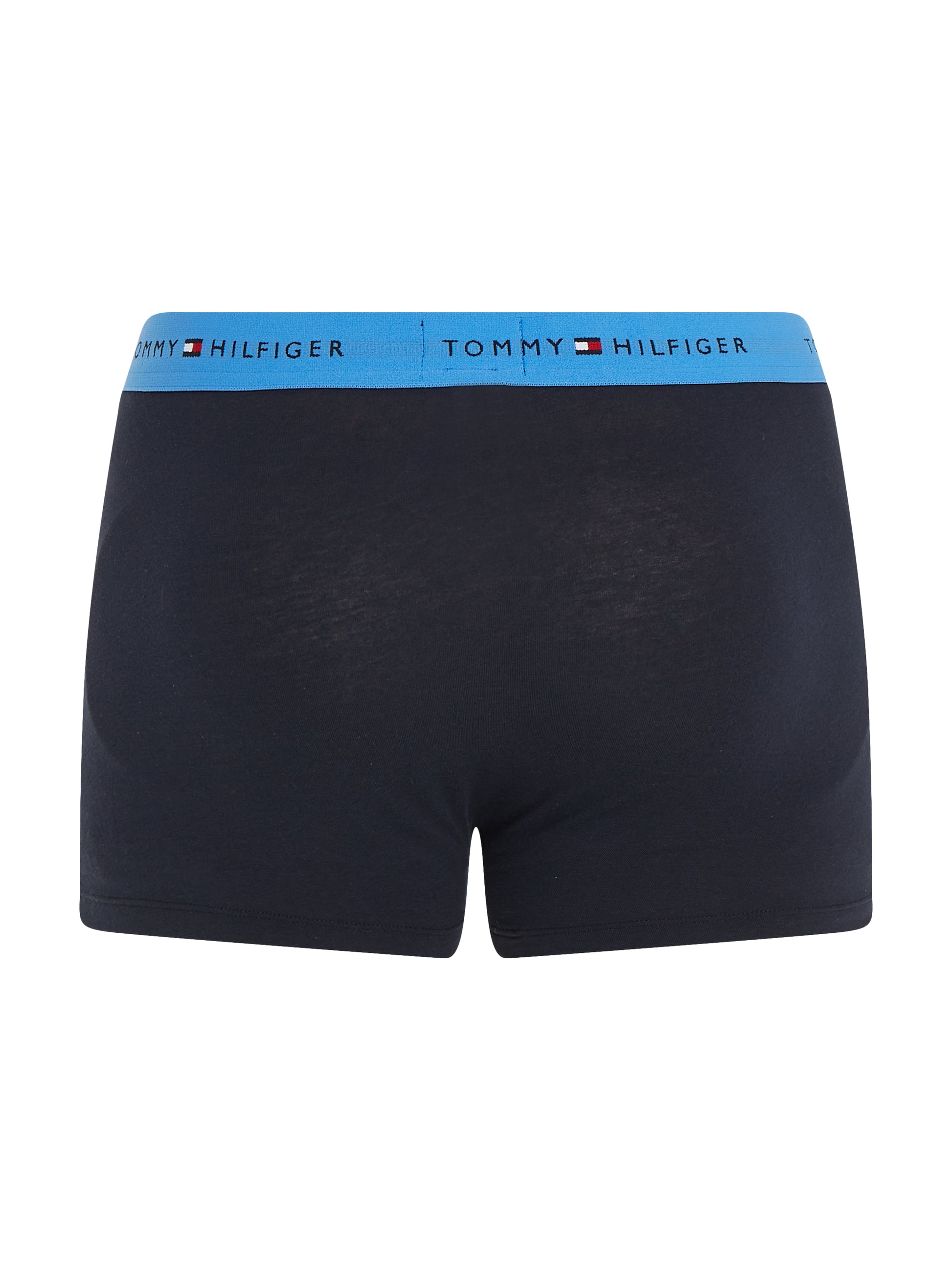 Tommy Hilfigerin puuvillaiset bokserit. Paketissa kolmet tummansiniset, joissa eriväriset logo-kuminauhat, keltainen, sininen ja tummansininen.