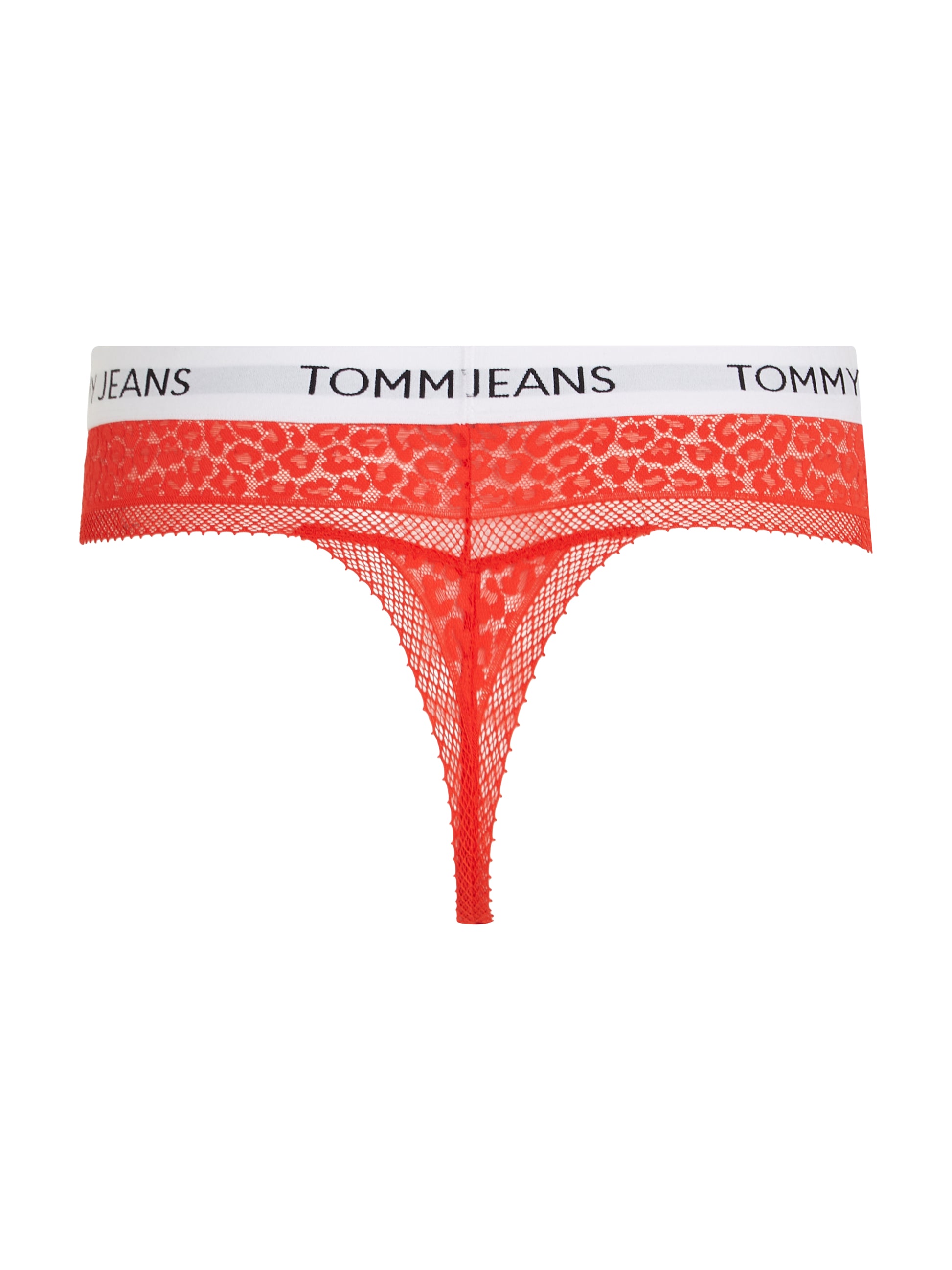 Tommy Jeansin hehkeän punaiset stringit. Leveä logo-kuminauha ja kauniit pitsiset yksityiskohdat.