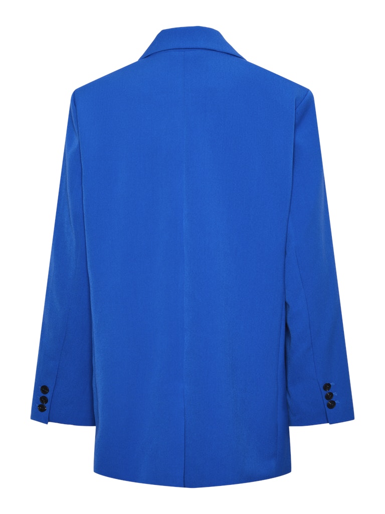 Yas ilahduttaa oversize-mallisella bleiserillään upeassa kirkkaan sinisessä sävyssä. Jos haluat tästä itsellesi istuvamman mallin, tilaa yhtä pienempi koko. Kiva yksityiskohta on mustat napit.