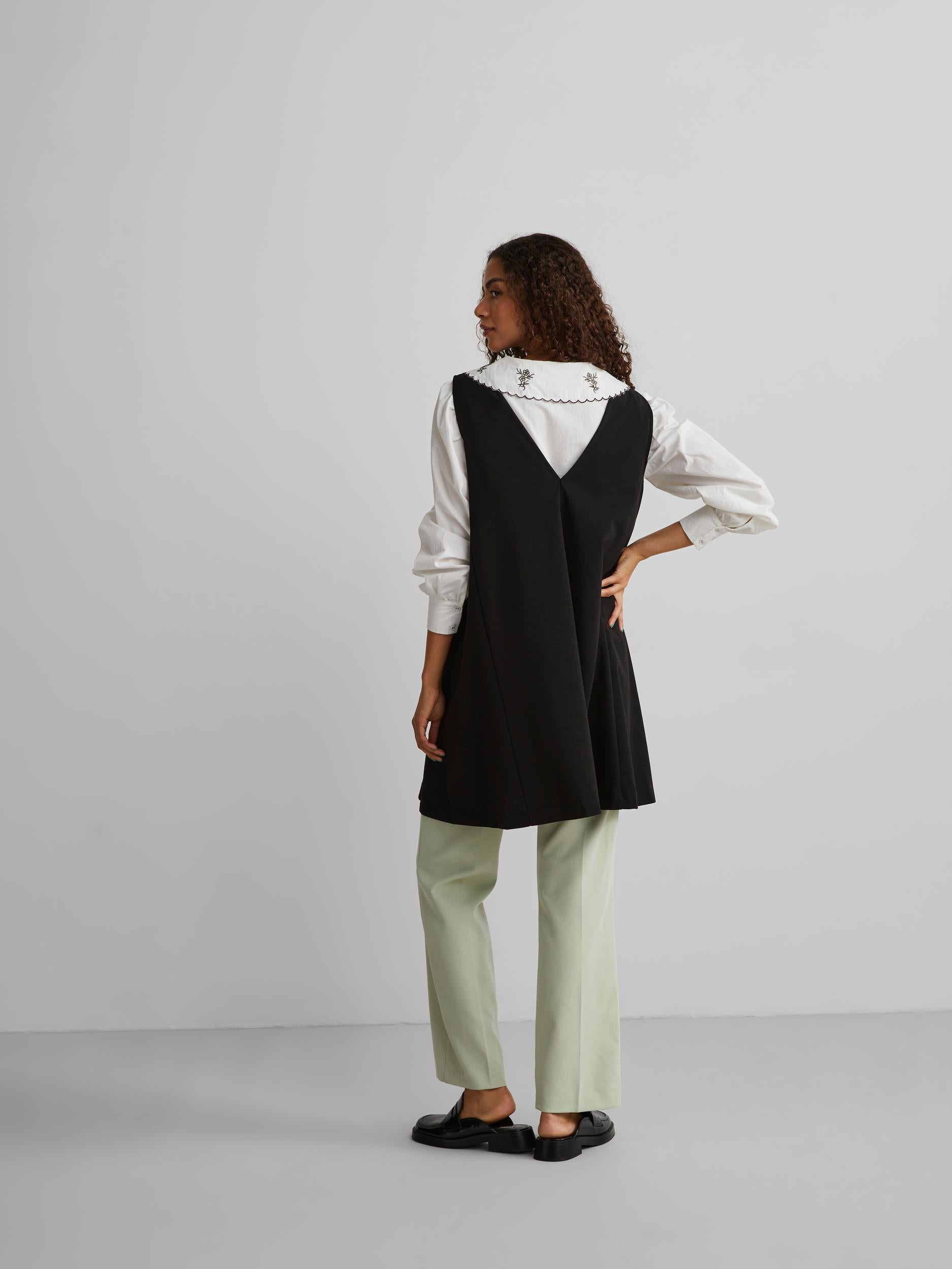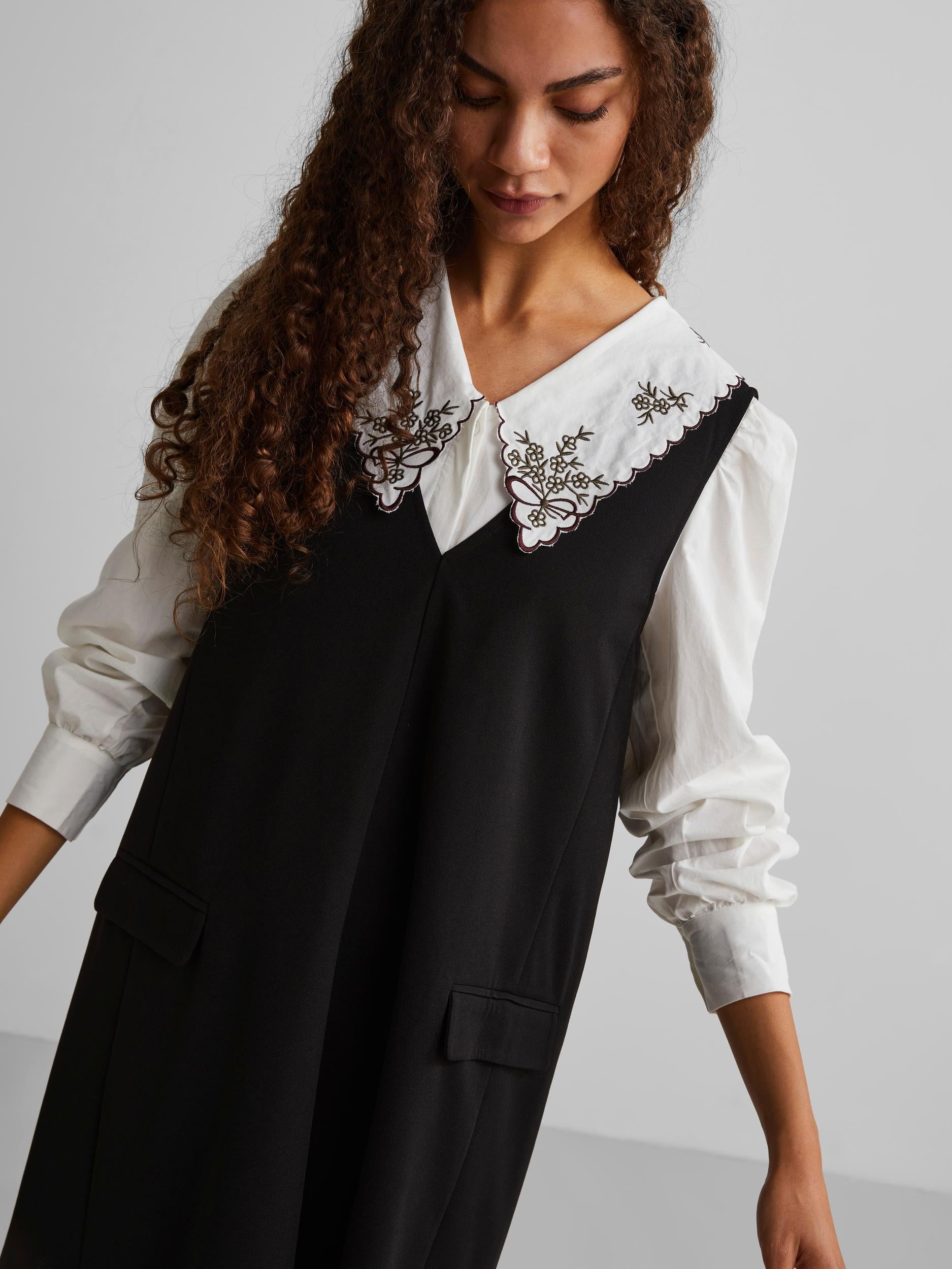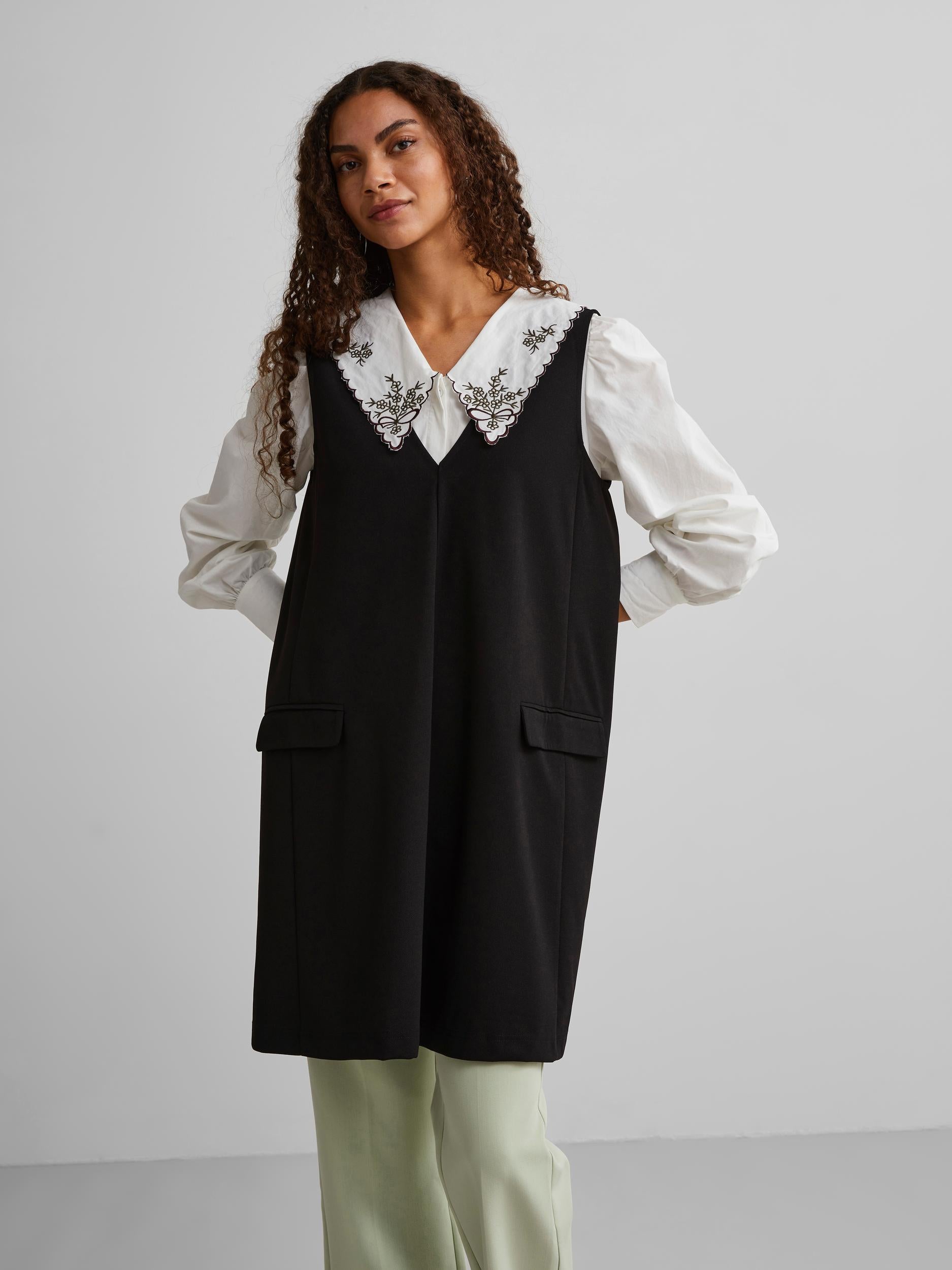 Y.A.S :n kaunis musta liivimekko. Leveä A-linjainen malli. Yhdistä esimerkiksi kauluspaidan tai poolon kanssa.