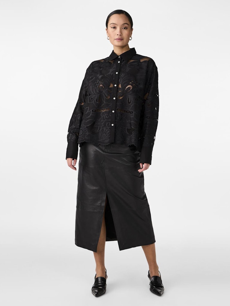 YAS :n upea läpikuultava kauluspaita kukkakirjailuilla. Napitus hihansuissa sekä edessä ylhäältä alas asti. Stailaa arkeen farkkujen kanssa ja juhlaan hameen kanssa!