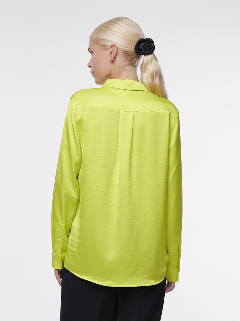 YAS:n satiinihohtoinen kauluspaita raikkaassa neonkeltaisesssa sävyssä - täydellinen katseenvangitsija arkeen ja juhlaan.